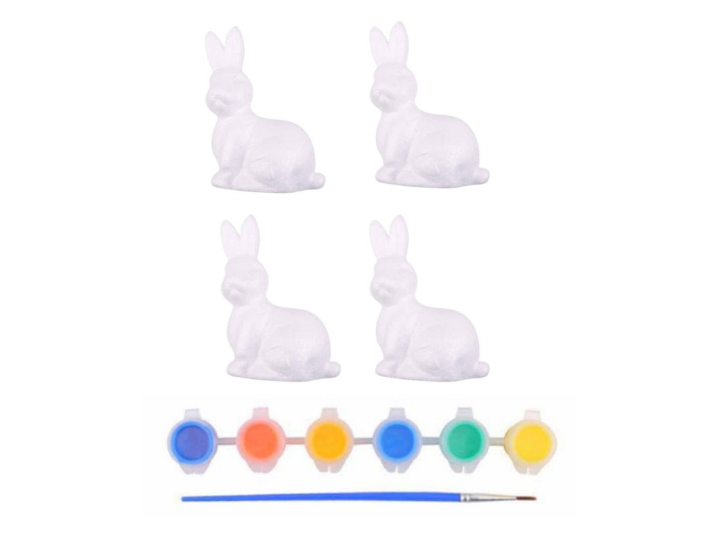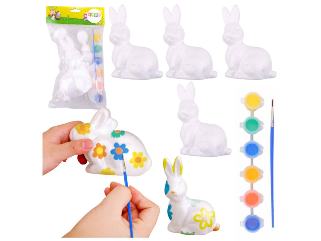 Styrofoam zajíčci na malování - 4 kusy s barvami jsou skvělým výběrem pro děti, které milují malování.