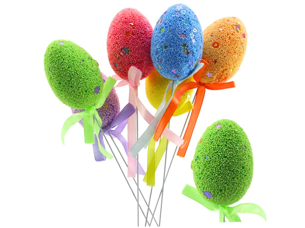 Velikonoční vajíčka na drátku jsou perfektním způsobem, jak ozdobit váš domov během velikonočních svátků Každé vajíčko je pečlivě ozdobeno styroporovými kuličkami a malými vzory, které mu dodávají výjimečný charakter