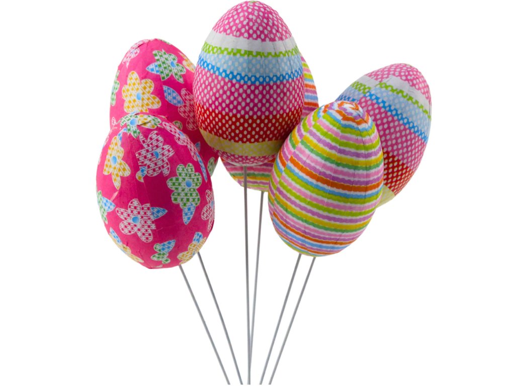 Velikonoční vajíčka na drátku puntíky květiny proužky ozdoba barevné 6ks