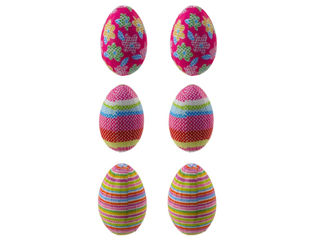 - Tato sada obsahující šest vajíček vám nabízí neomezené možnosti pro tvorbu nápaditých dekorací, a to díky kombinaci různých motivů a pastelových barev