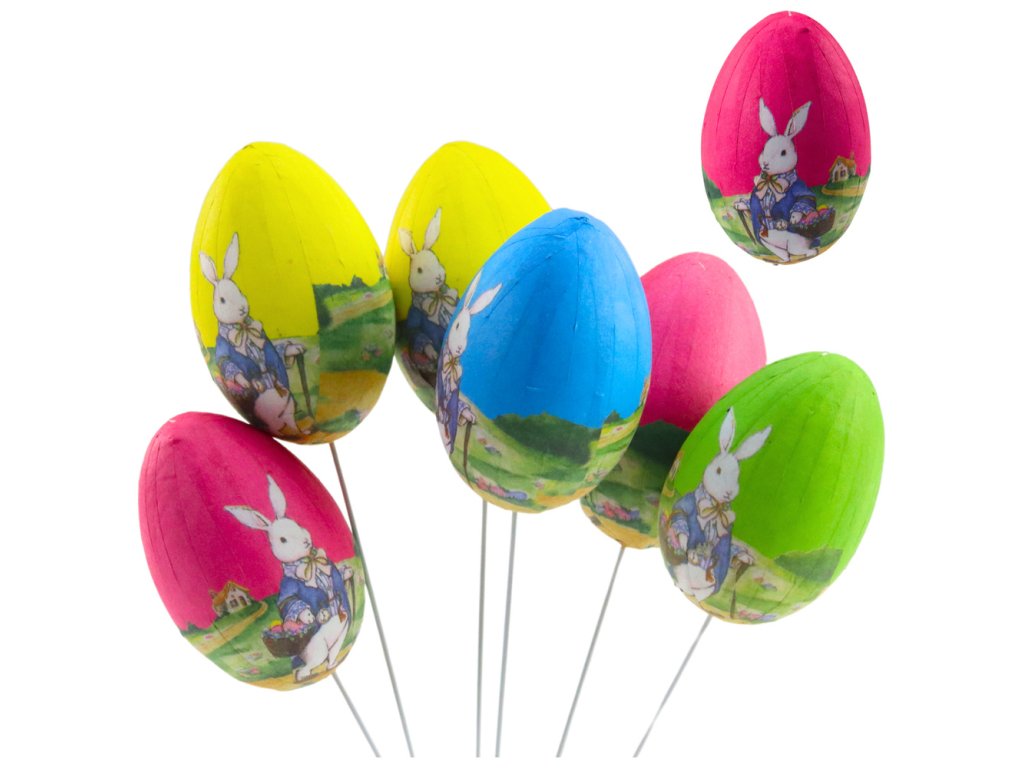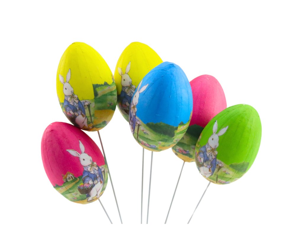- Krátký popis produktu: Velikonoční vajíčka na drátku s motivem zajíčka přinášejí jarní atmosféru do každého interiéru, ideální pro sváteční dekoraci