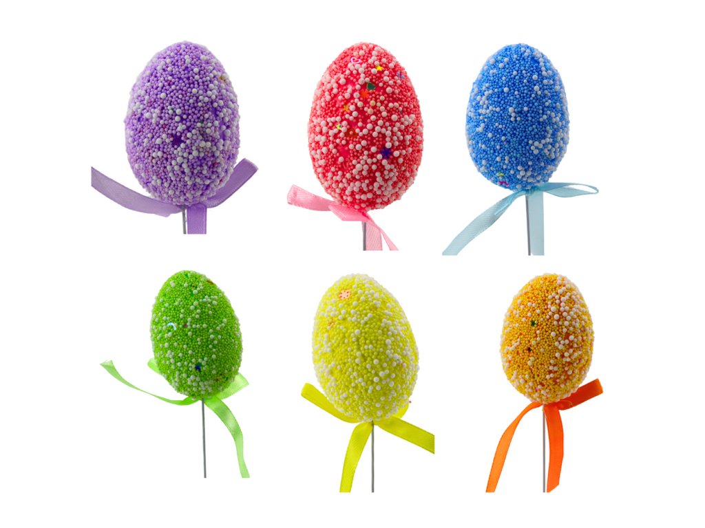 Velikonoční vejce na drátku barevné vzory dekorace stužka 6ks B