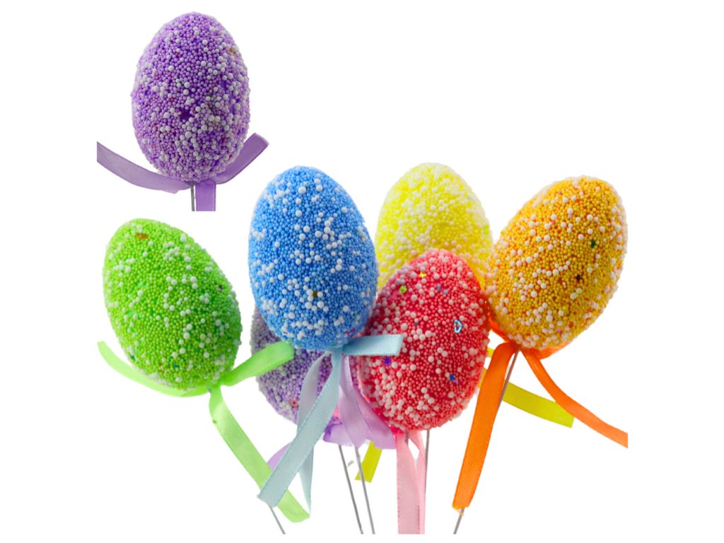 Velikonoční vejce na drátku jsou skvělým způsobem, jak ozdobit váš domov na Velikonoce Každé vejce je pečlivě zdobené polystyrénovými kuličkami a malými vzory, což jim dodává jedinečný charakter