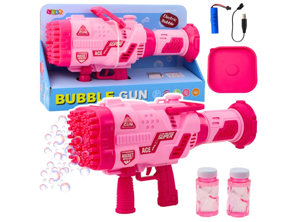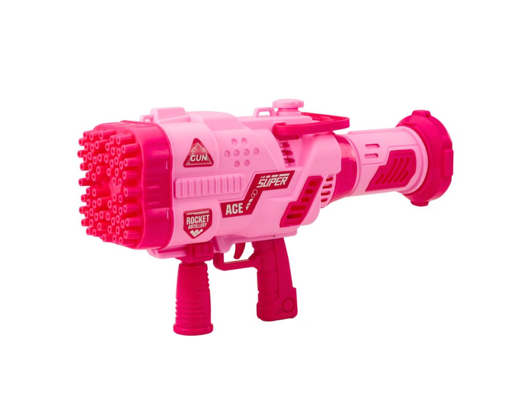 - Velká Elektrická Pistole Na Mýdlové Bubliny 64 Otvorů Růžová je moderní hračka, která přináší klasickou dětskou zábavu na zcela novou úroveň