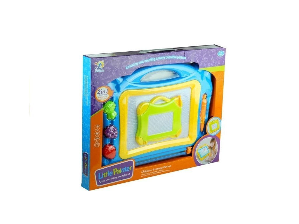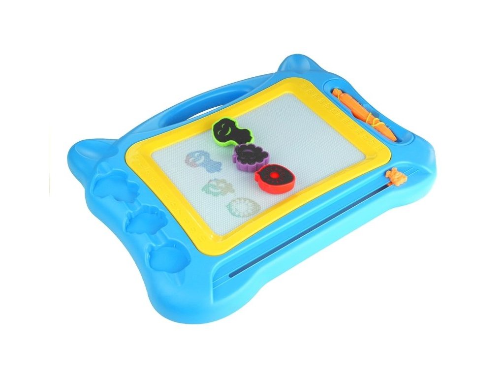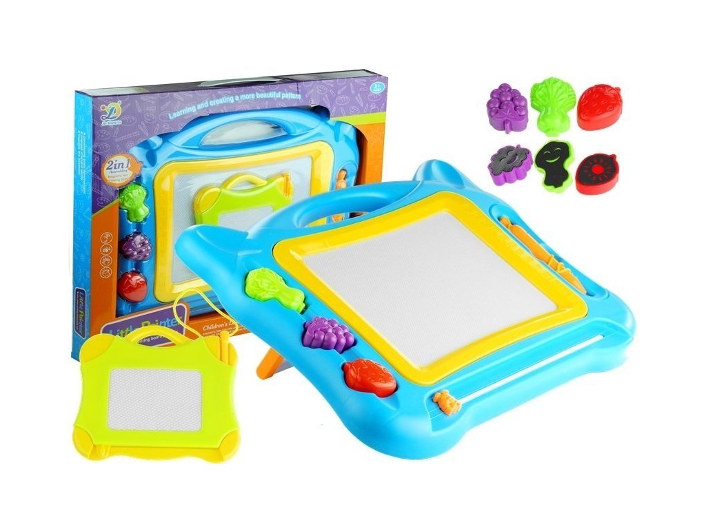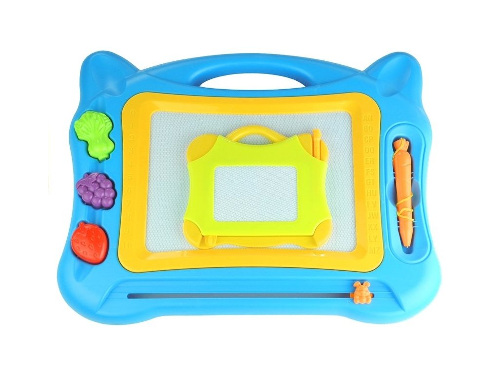 Velká magnetická tabule se razítky a menší tabulkou Magnetická tabule je skvělá hračka, kterou pravděpodobně znají všichni děti, jejich rodiče i prarodiče