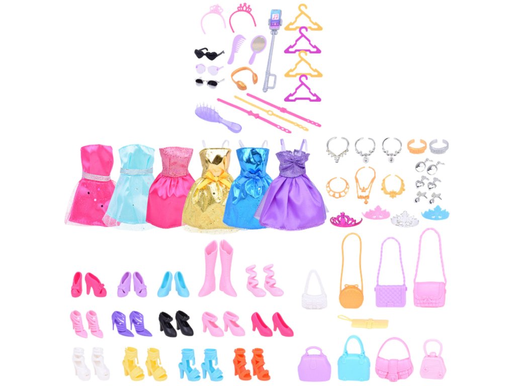 - Tato úchvatná 65dílná kolekce oblečení a doplňků nabízí nekonečné možnosti kombinací a vytváření působivých outfitů pro panenky