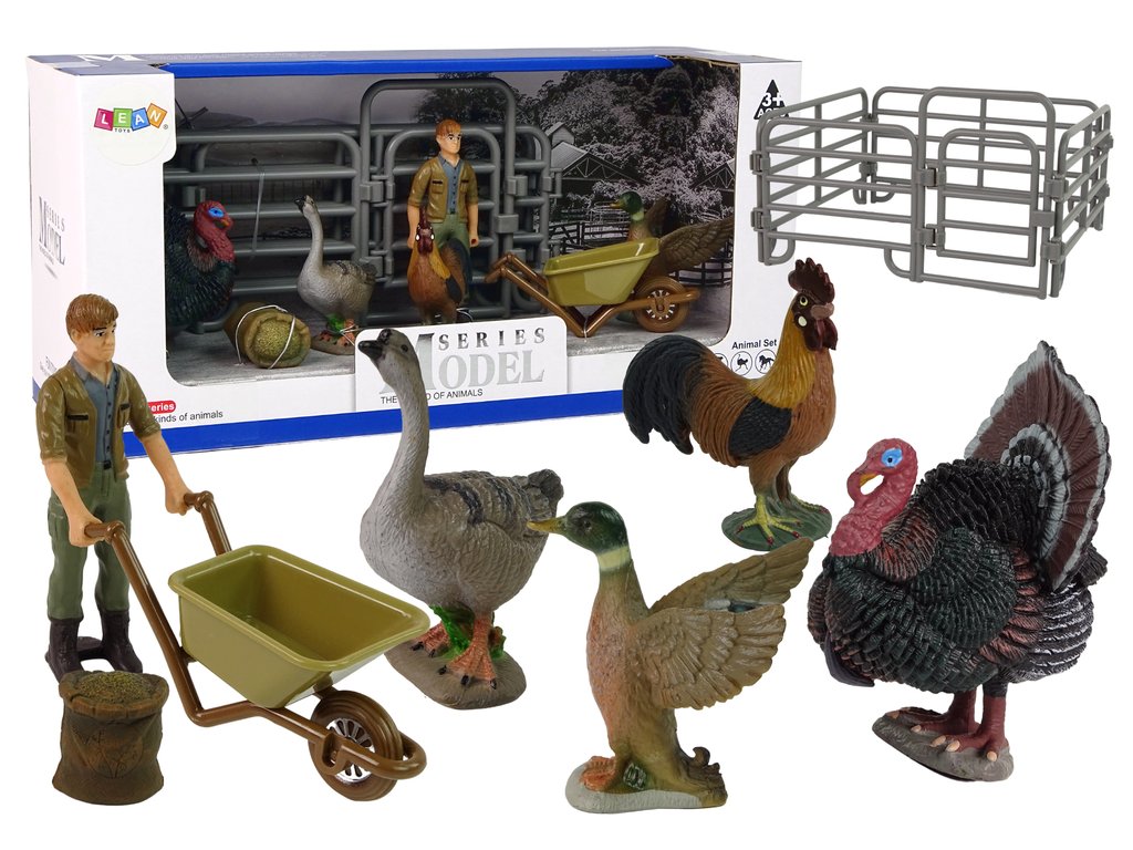 Velká Sada Figurek Farma Vesnice Krocan Slepice Kohout Kolečka 11 Elementů