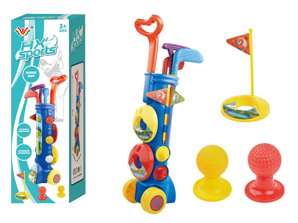 - Obsahuje vše potřebné pro začínajícího golfistu: golfový vozík na kolečkách