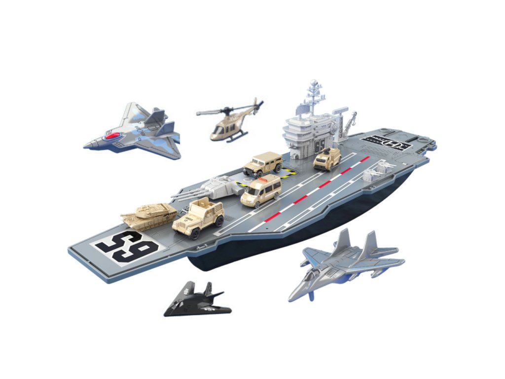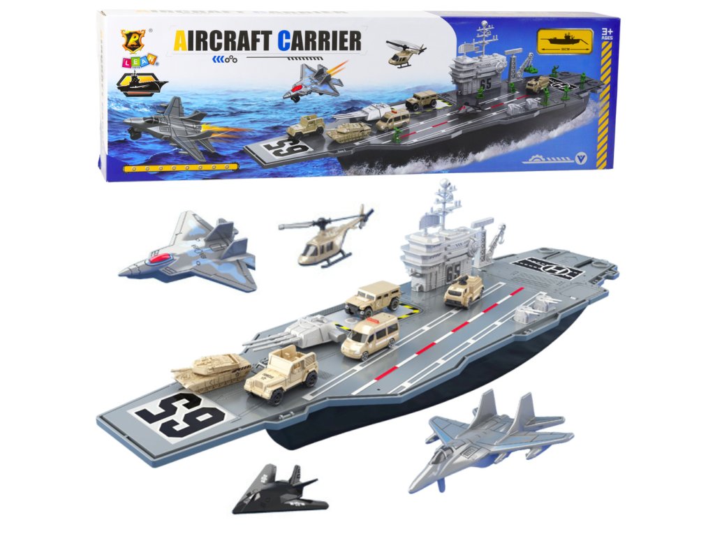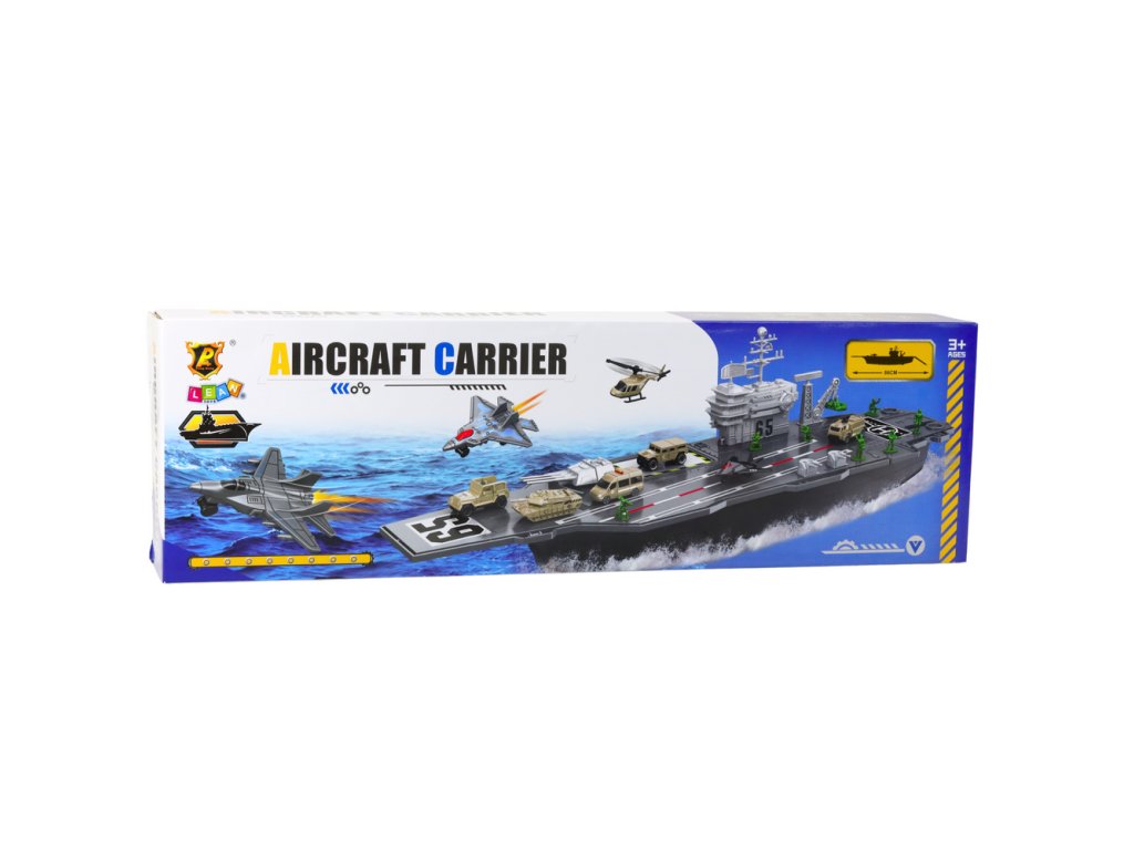 Tato impozantní vojenská letadlová loď je jedinečná sada pro malé fanoušky vojenské techniky, letadel a mořských dobrodružství Hračka o délce až 70 cm zaujme velikostí a detailním provedením, které přenese dítě přímo doprostřed strategických válečných manévrů