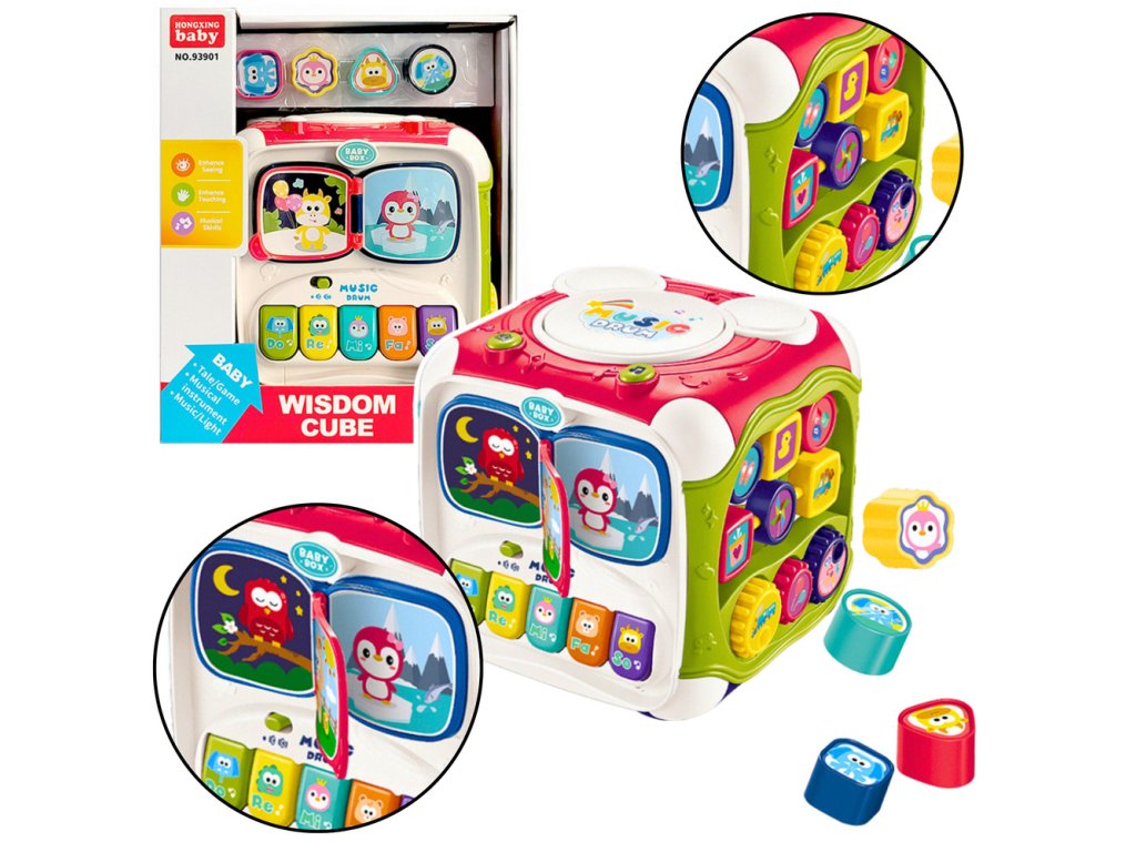 - Tato úžasná interaktivní kostka je navržena tak, aby rozvíjela smysly a motorické dovednosti vašeho dítěte a zároveň ho ponořila do světa hudby