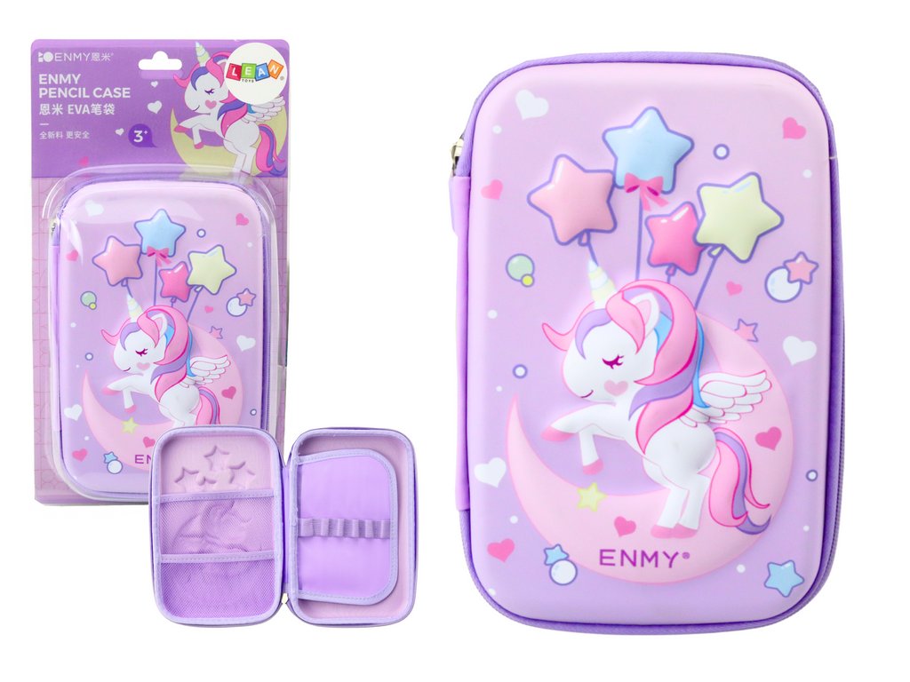 - Velké rozkládací pouzdro 3D Jednorožec ve fialové barvě o rozměrech 23x15x5 cm je ideální volbou pro mladé milovnice kouzelných tvorů, které chtějí spojit funkčnost s okouzlujícím designem