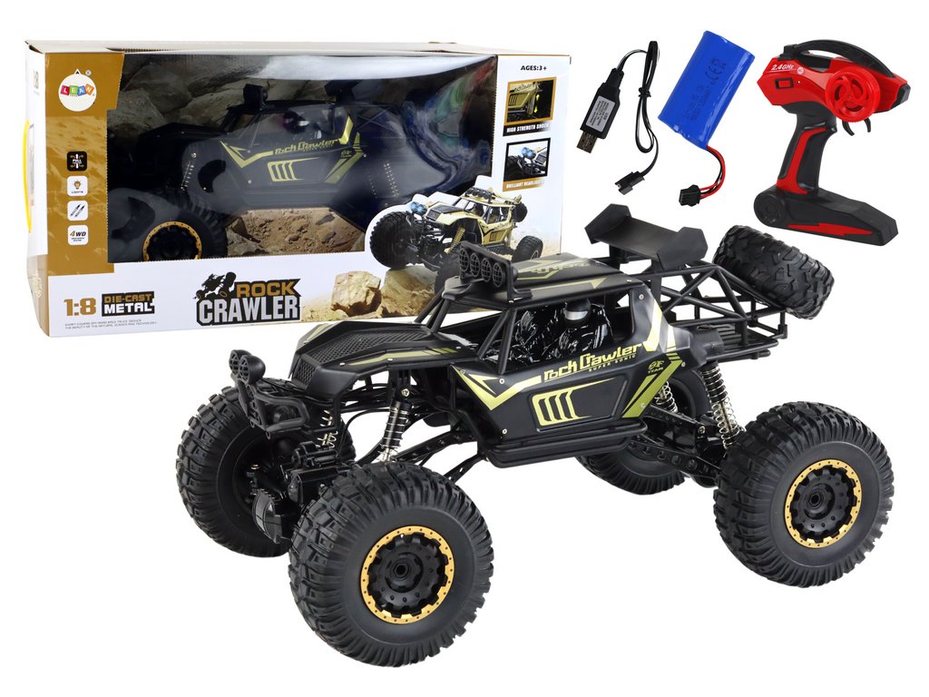 Díky měřítku 1:8 a pohonu na čtyři kola je náš terénní vůz připraven na jakoukoli výzvu. Velké gumové pneumatiky a pružinové vysoké zavěšení mu umožňují překonávat různé terény. Vyroben z nejkvalitnějších materiálů, jeho kovová karoserie zaručuje nejen výjimečnou odolnost, ale i působivý vzhled.