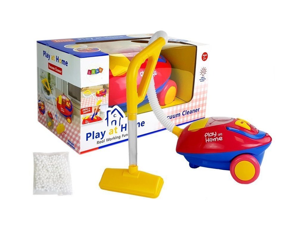 - Červeno-žlutý vysavač na baterie se světly a zvukem Dětské domácí spotřebiče jsou skvělým nápadem, jak zpestřit učení samostatného provádění domácích prací