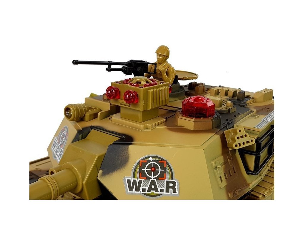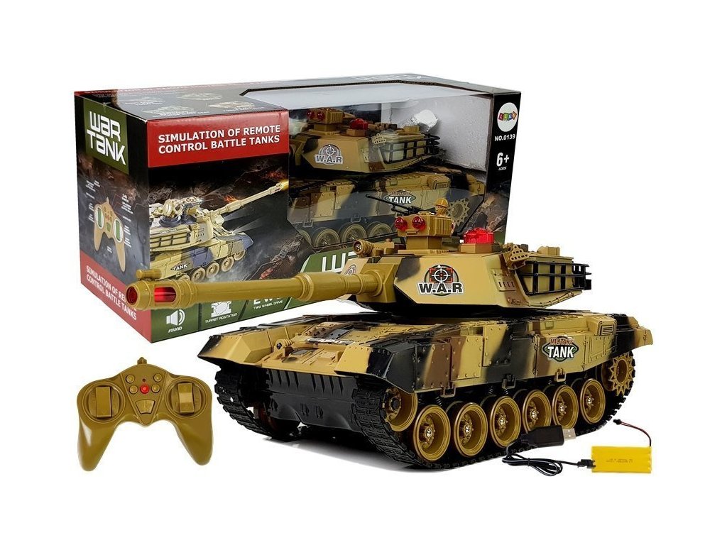 - S naším velkým dálkově ovládaným tankem R/C 2.4 GHz se světly a zvuky střelby v elegantní žluté barvě může zažít naplno vzrušení z vojenských operací