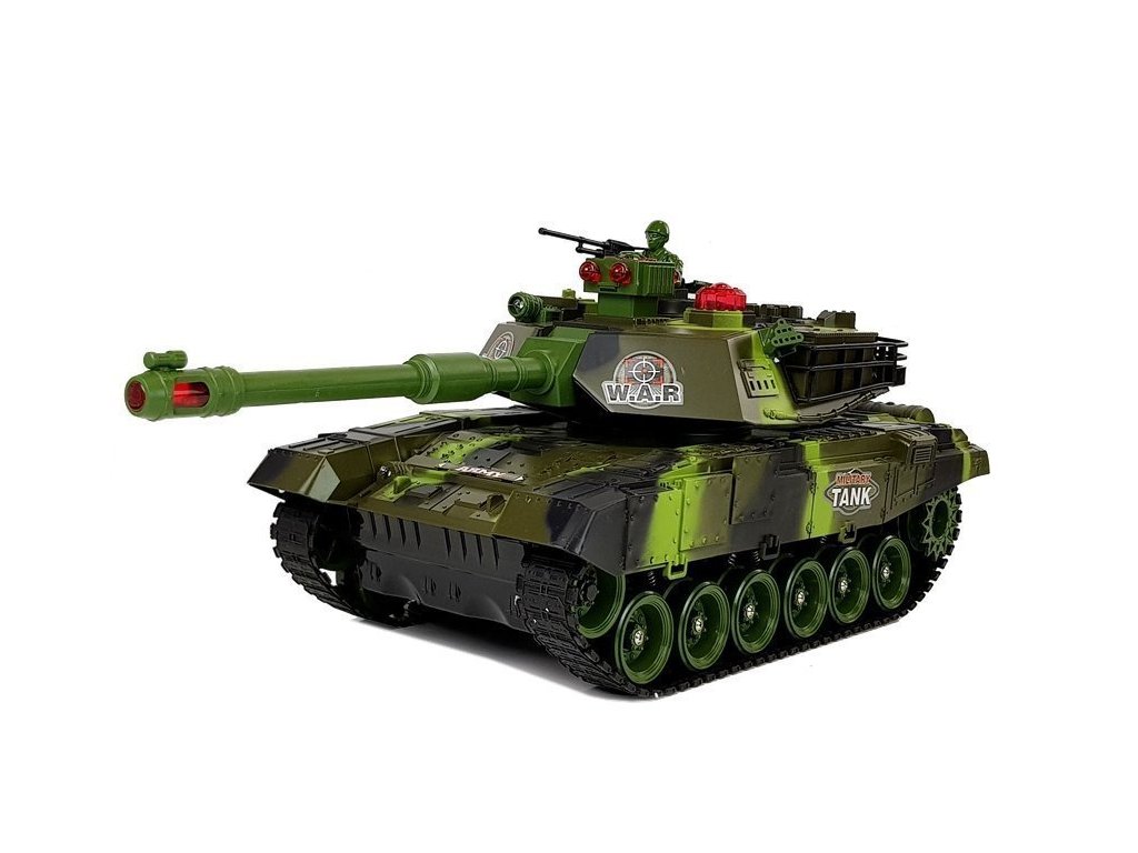 Bitva s naší hračkou bude vzrušující a zajímavá Tank má válečné zbarvení, zeleno-černé, pásové pneumatiky imitují jízdu skutečného tanku