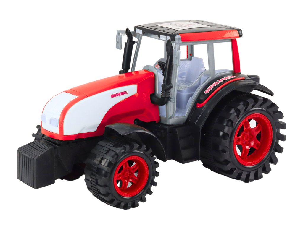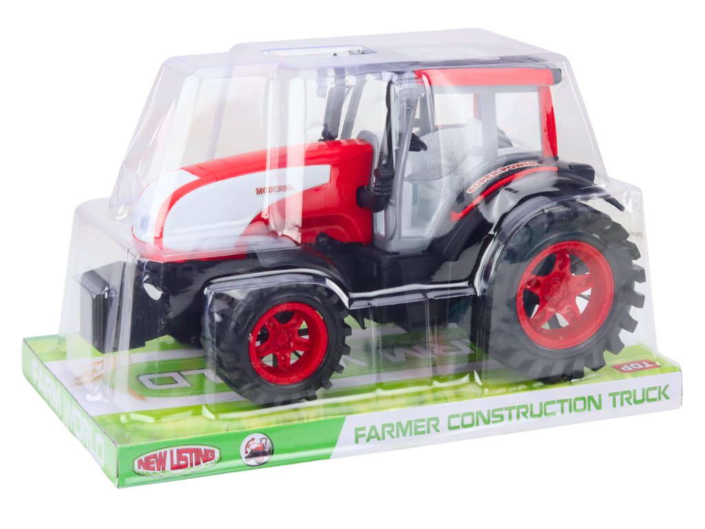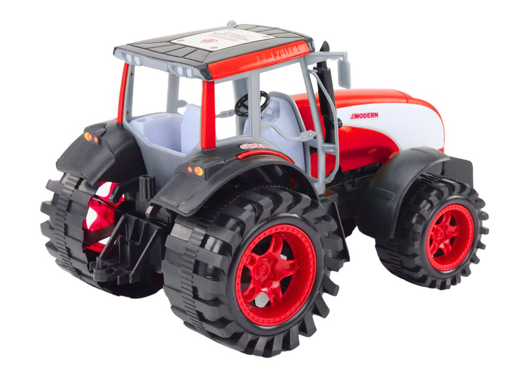 Velký Farmářský Traktor Zemědělský Pohon Červený je červený traktor, který je ideální napodobeninou skutečného zemědělského stroje Tento traktor umožňuje dětem přenést se do světa farmy a vytvářet si vlastní scénáře práce na poli