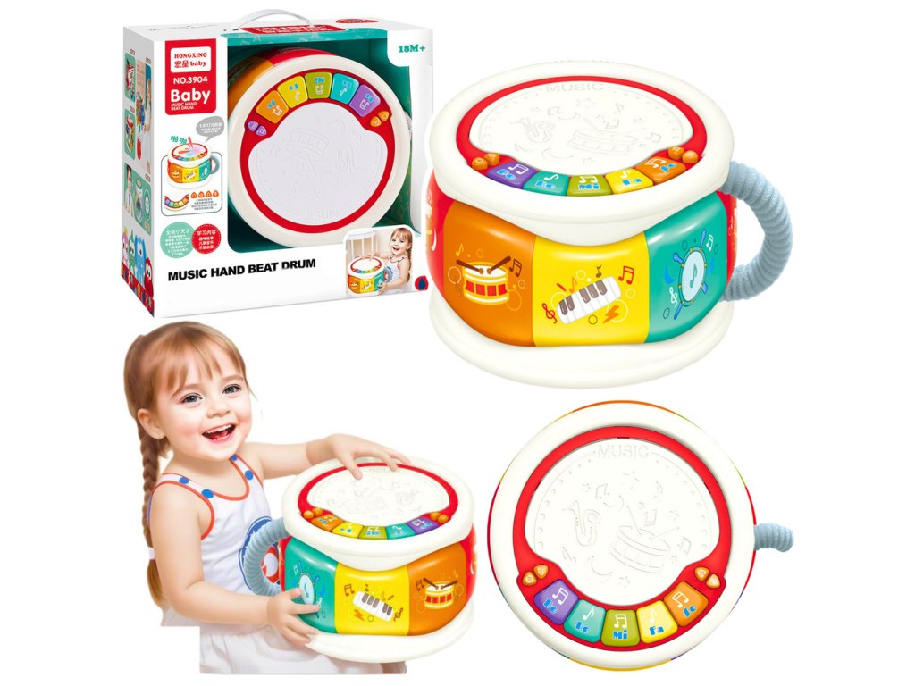 Velký interaktivní vzdělávací bubínek pro batole je ideální vzdělávací hračka, která podporuje zvukový, manuální a motorický rozvoj dítěte Díky zvukovým a světelným efektům a barevným tlačítkům může dítě objevovat první zvuky, rytmy a melodie a zároveň zdokonalovat svou pohybovou koordinaci