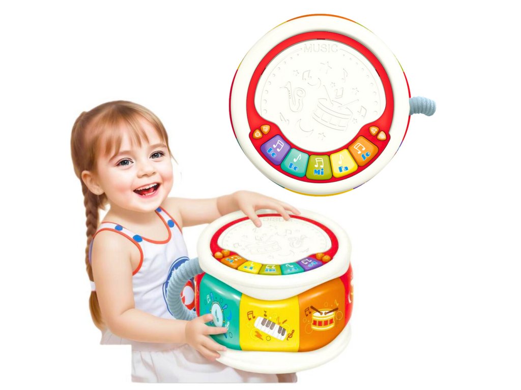 Velký interaktivní vzdělávací bubínek pro batole je ideální vzdělávací hračka, která podporuje zvukový, manuální a motorický rozvoj dítěte.