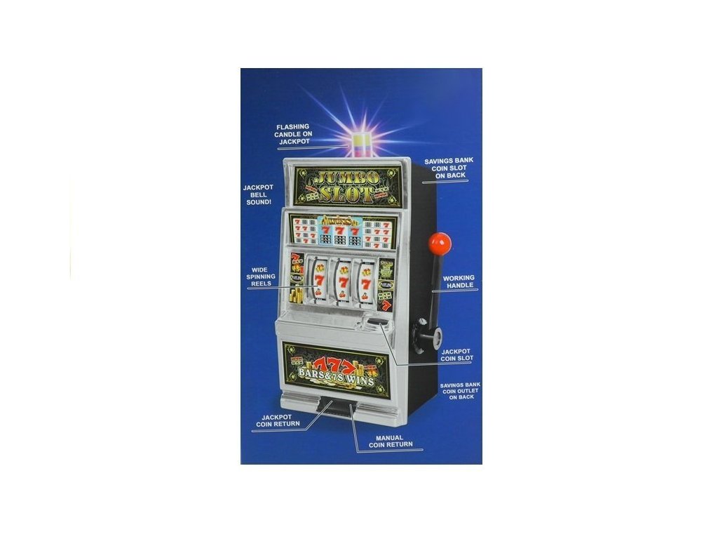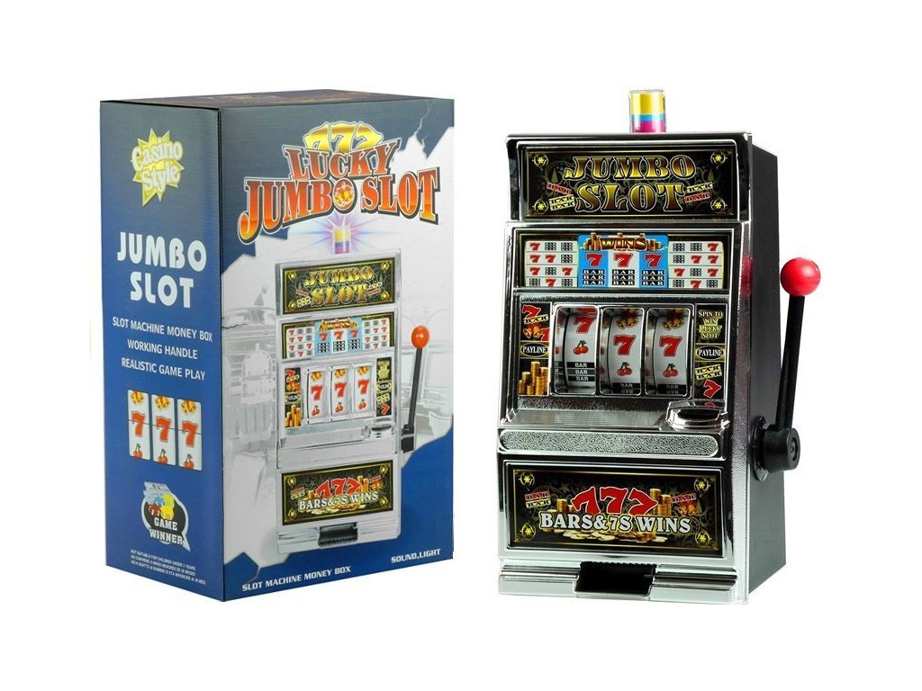 Jak funguje Jumbo Slot? Stačí vložit minci do správného místa a potáhnout za páku na boční straně automatu. Když se tři válce s typickými kasinovými motivy roztočí, dítě může zažít vzrušení a radost z výhry, když správná kombinace symbolů přináší zpět jeho minci. Pokud kombinační symboly nejsou výherní, peníz se vrátí při dalším úspěšném pokusu. Automat také nabízí možnost manuálního vyjmutí mince. Tento velký automat obsahuje také pokladničku, která umožní dítěti rozumně nakládat se svými úsporami díky otvoru pro mince na zadní straně.