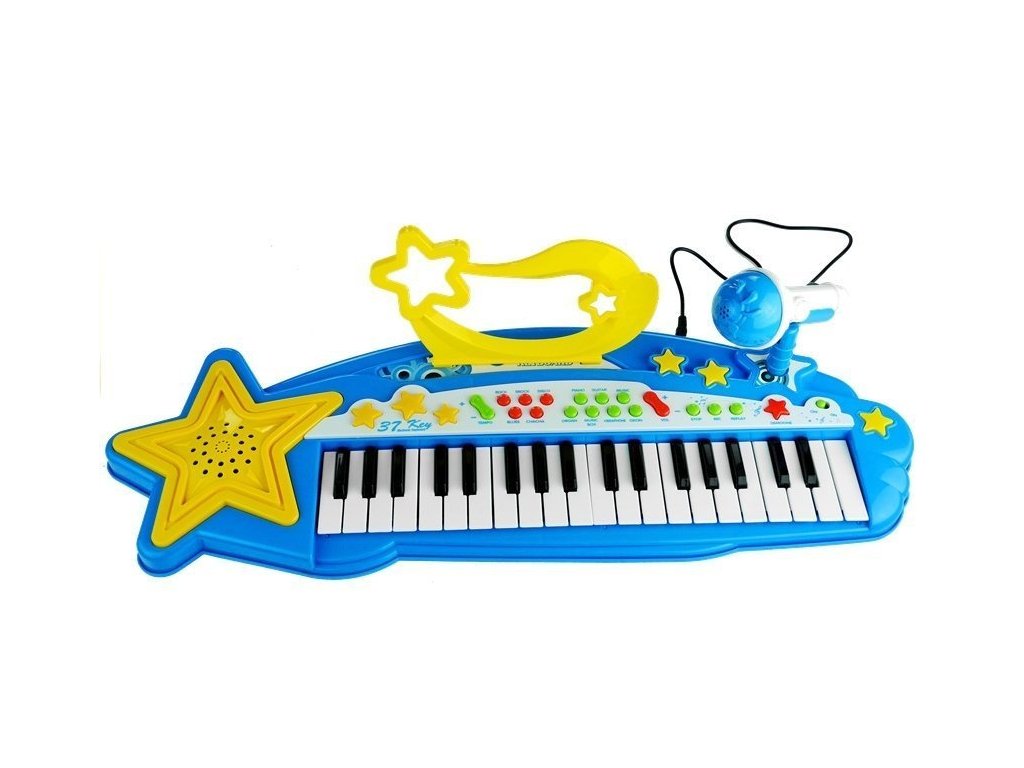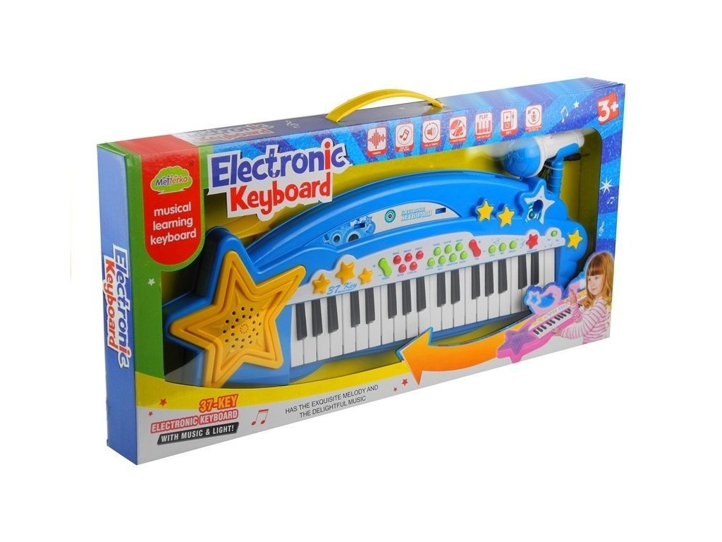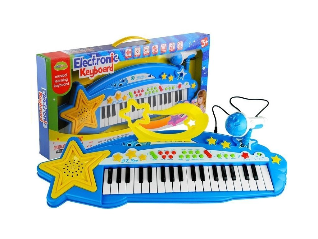 Velký Keyboard 37 Kláves MP3 + Mikrofon Modrý je ideální hudební nástroj pro chlapce Keyboard disponuje 37 klávesami