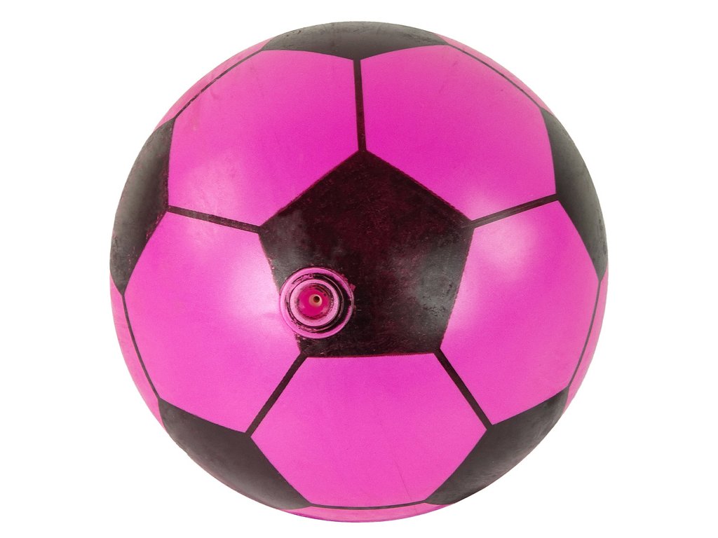 Velký růžovo-černý gumový míč je dokonalou hračkou pro aktivní děti Tento míč o průměru 23 cm má povrch hladký a pružný, což zajišťuje bezpečnost a zábavu při hraní