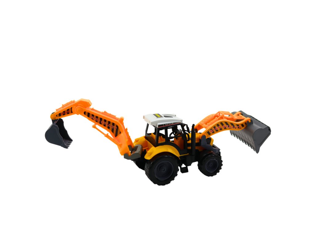 Solidní konstrukce a velká, terénní kola zajišťují, že si vozidlo skvěle poradí na různých površích, což umožňuje hru jak doma, tak na čerstvém vzduchu Zvedací a spouštěcí lžíce předního nakladače a pohyblivé rameno zadního rypadla umožňují provádět různé práce jako nakládání, kopání a přemisťování materiálů