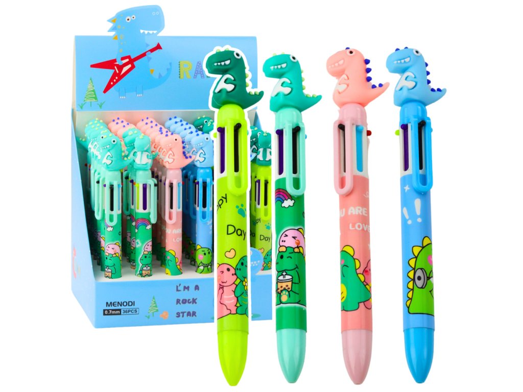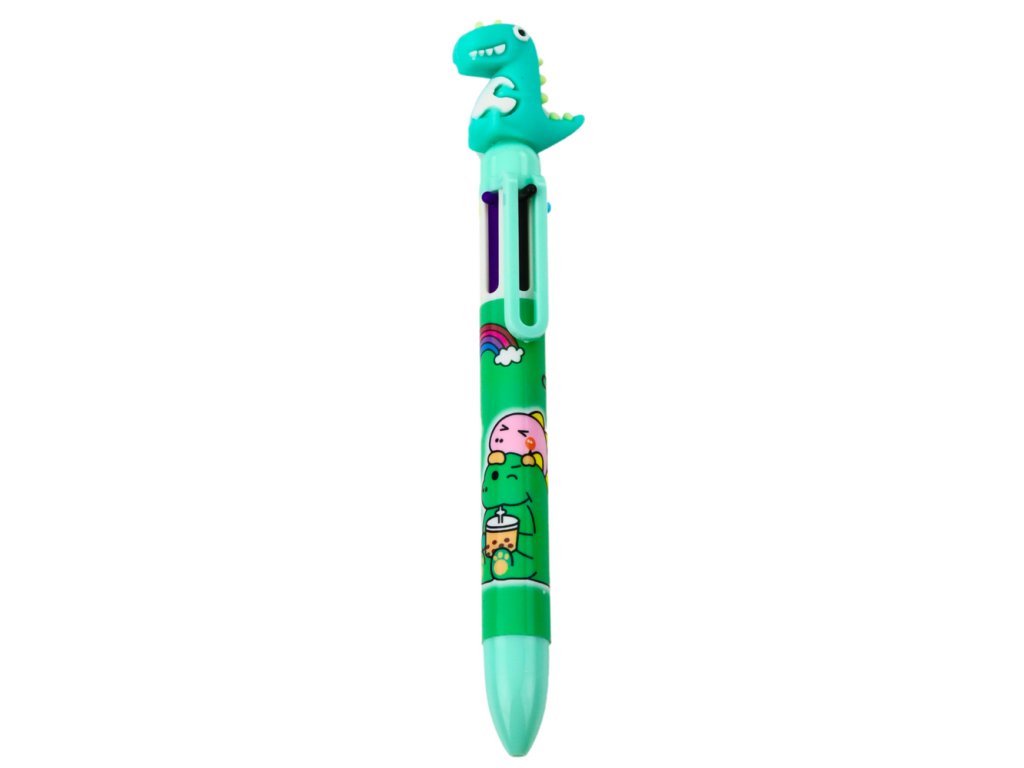 Přeměňte každodenní psaní na zábavný zážitek s vícebarevným kuličkovým perem s figurkou dinosaura Tento originální a praktický doplněk do každého penálu přinese radost nejen dětem