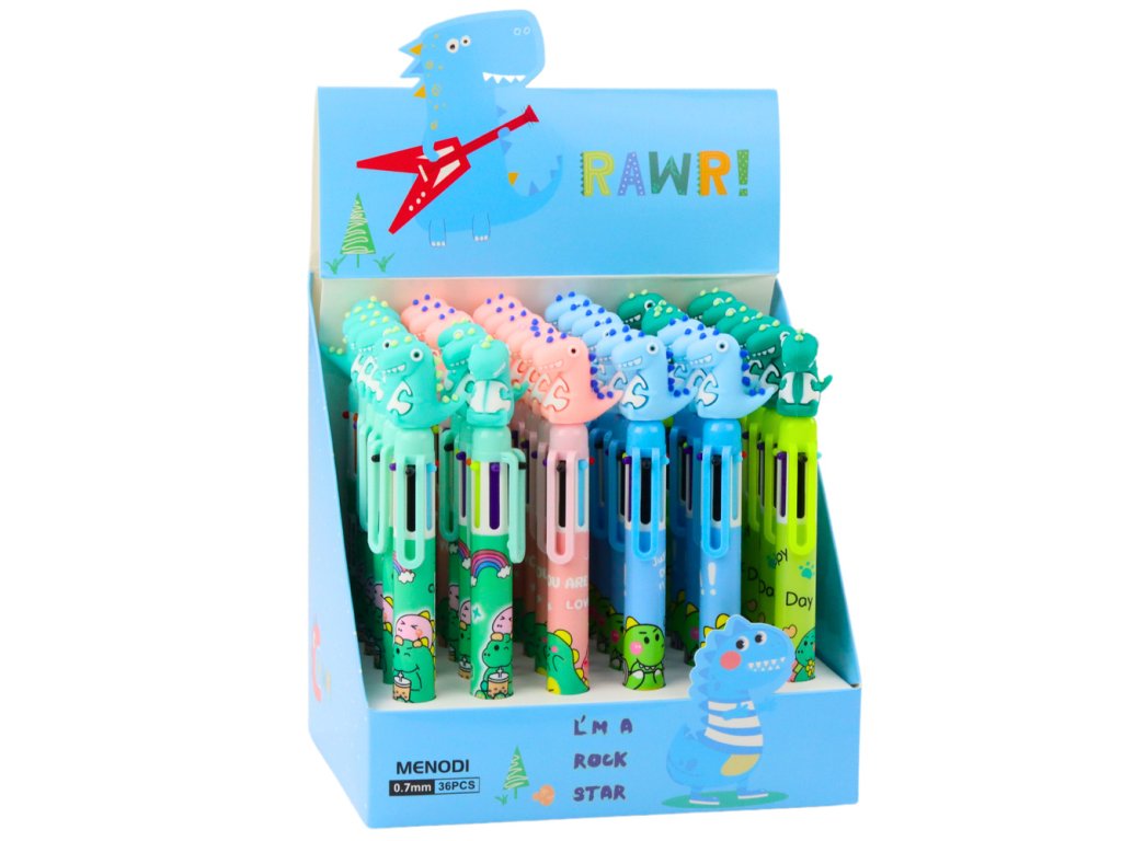 - Vytvořte si z každodenního psaní zábavnou a kreativní aktivitu s naším vícebarevným kuličkovým perem, které doplňuje figurka dinosaura