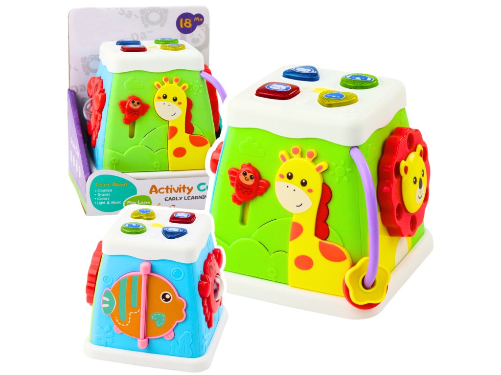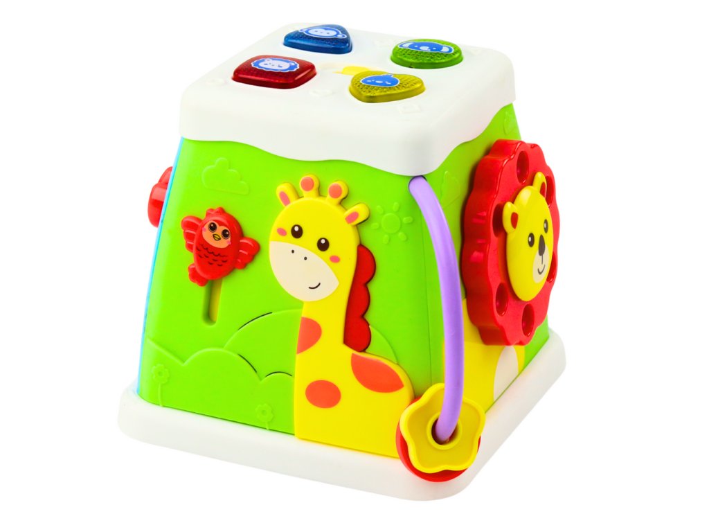 - Víceúčelová edukační interaktivní kostka je skvělou stavebnicí pro nejmenší, která aktivně podporuje jejich rozvoj už od prvních měsíců života