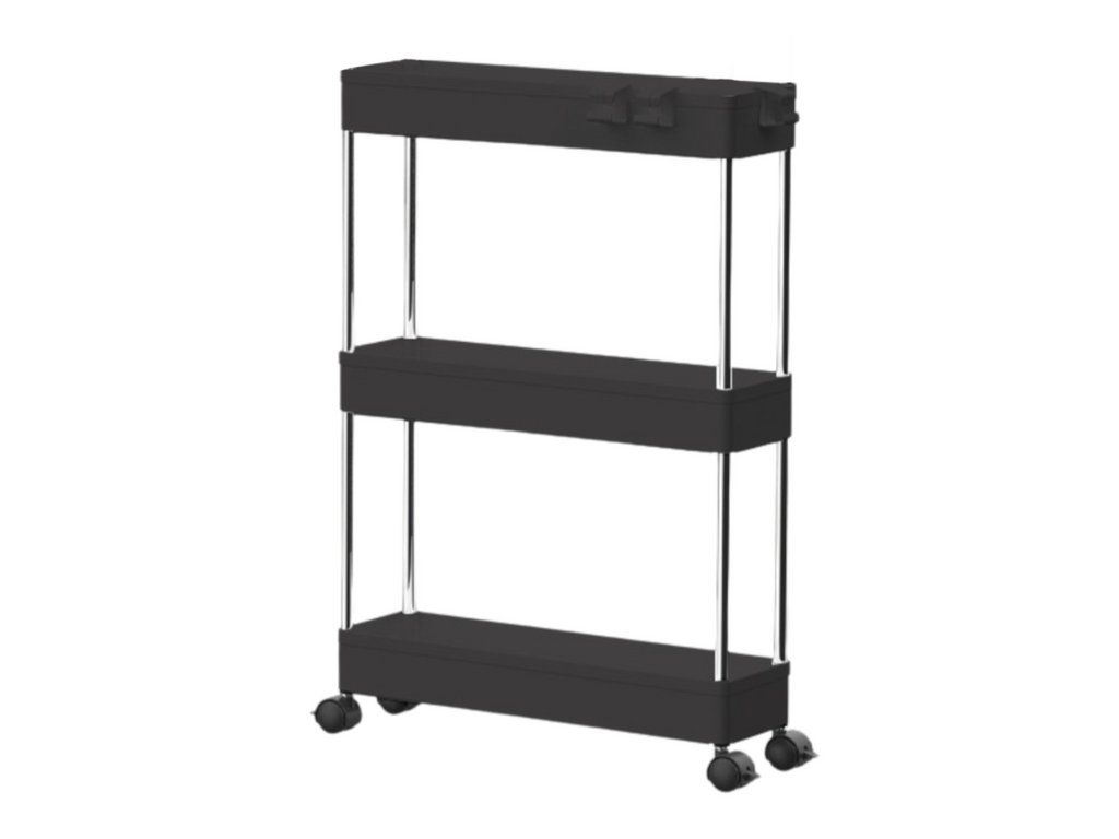 Víceúčelový Mobilní Regál na Kolečkách se 3 Policemi Černý