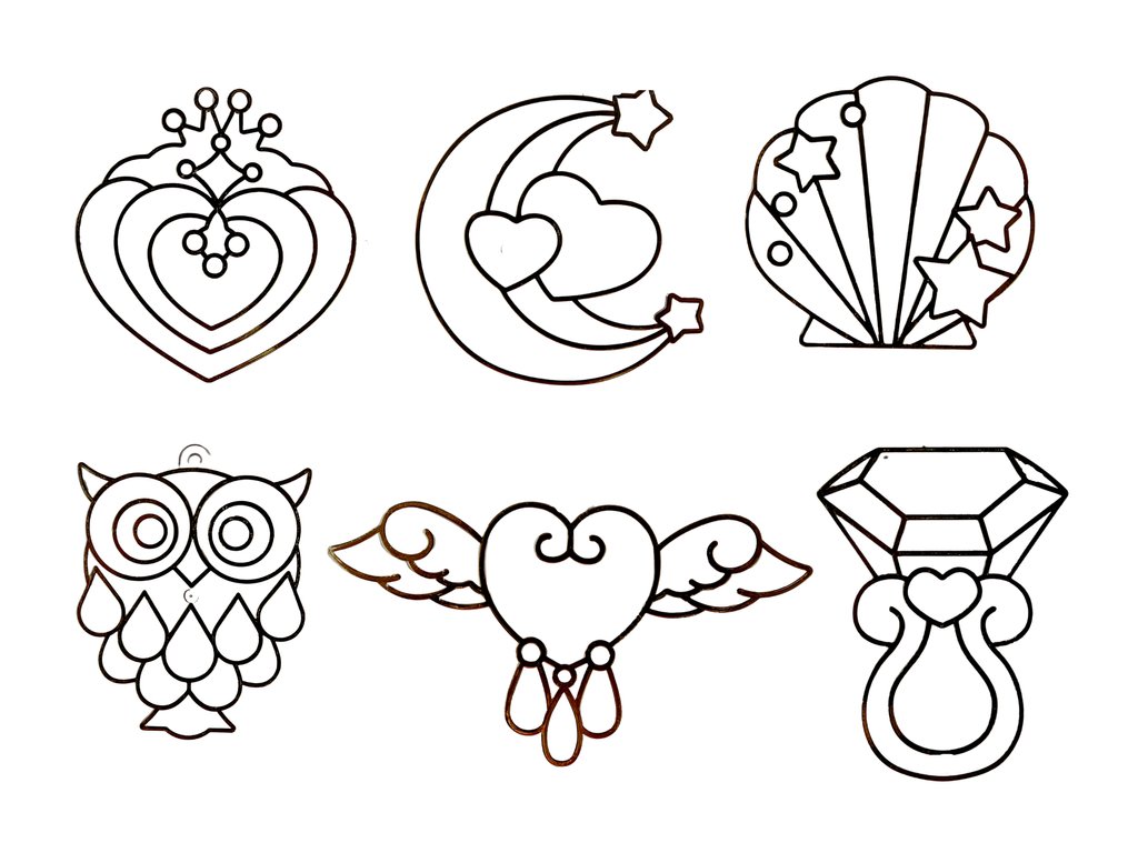 Vitráže závěsné malířské šablony se zasychající barvou 6 ks