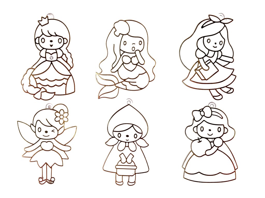 Vitráže závěsné malířské šablony s tuhnoucí barvou princezny 6 ks