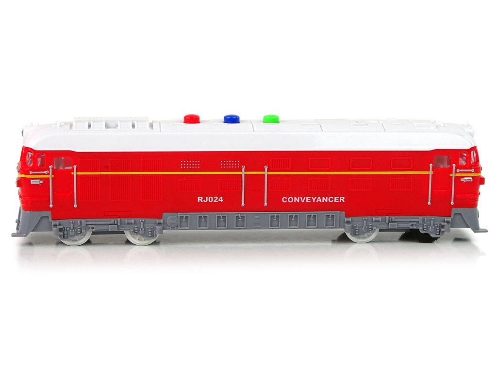 Vlak 1:32 Pohon Červený Zvuk Světla Prezentovaný vlak je opravdová zábava pro malého strojvůdce a sběratele Vžívání se do různých rolí je jednou z oblíbených činností našich dětí