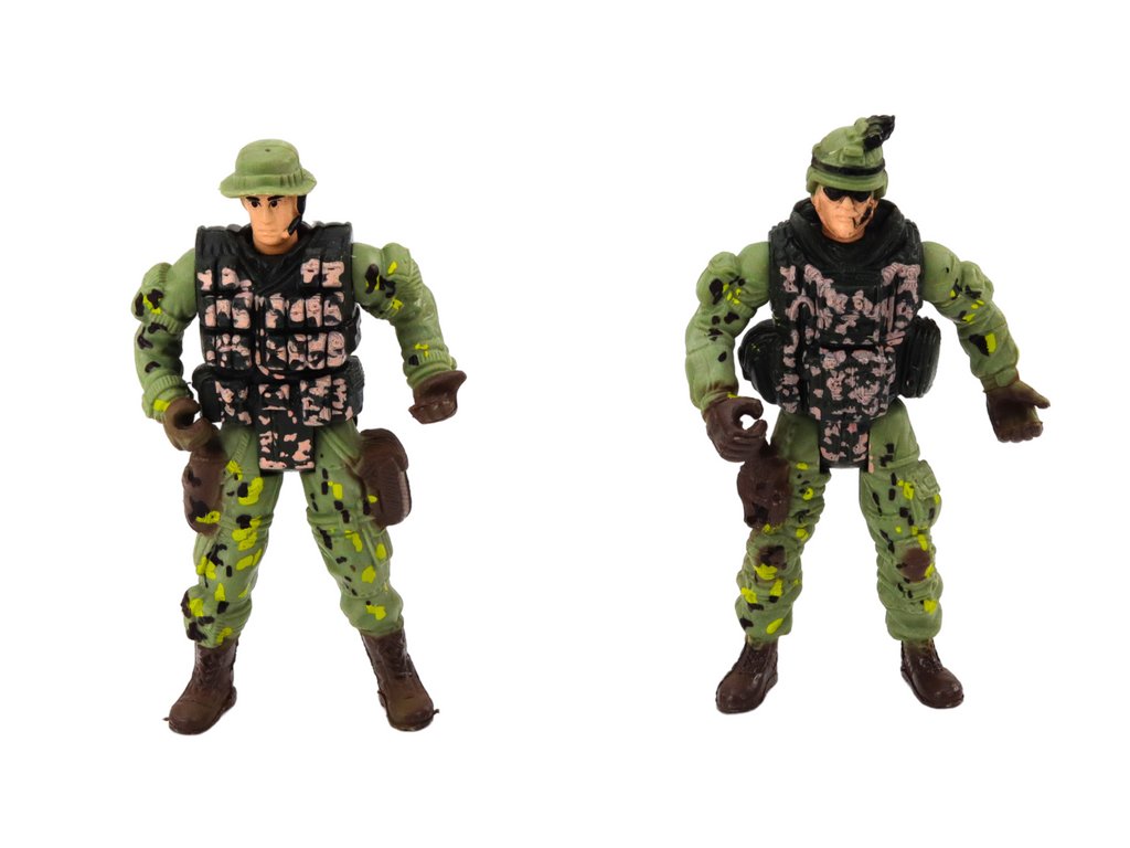 - Dvě figurky vojáků jsou připravené vyrazit do boje kdykoliv a kdekoli