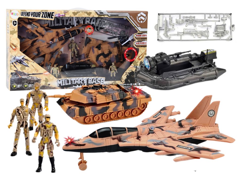 Vojenská sada je jedinečná hračka, která dětem poskytne vzrušující zábavu a rozvoj fantazie Sada obsahuje tank, stíhačku, pontón a figurky vojáků, které umožňují vytváření realistických vojenských scénářů