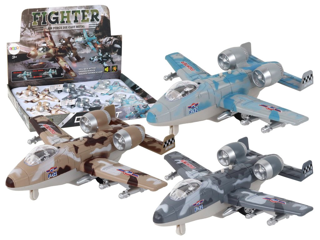 Stíhací letoun s pohonem Moro Vojenský tryskový letoun Každé letadlo je věrnou replikou vojenského stroje a dětem poskytuje nezapomenutelné zážitky při hraní Letadla mají světelné a zvukové efekty, které napodobují charakteristické zvuky vojenských strojů, přidávají realističnost a stimulují dětskou fantazii