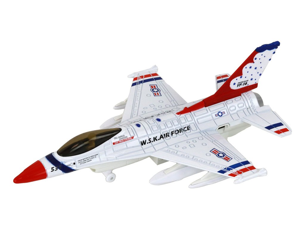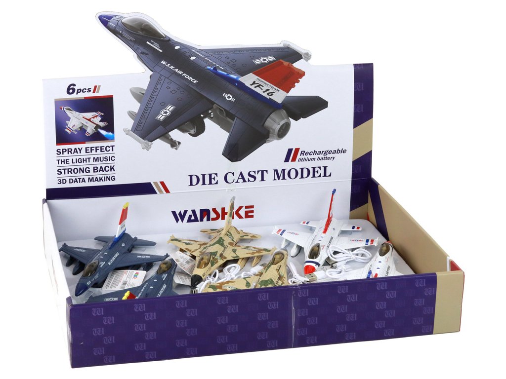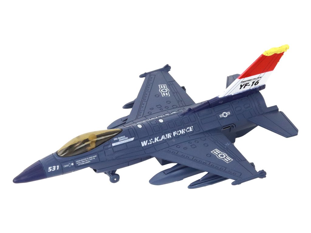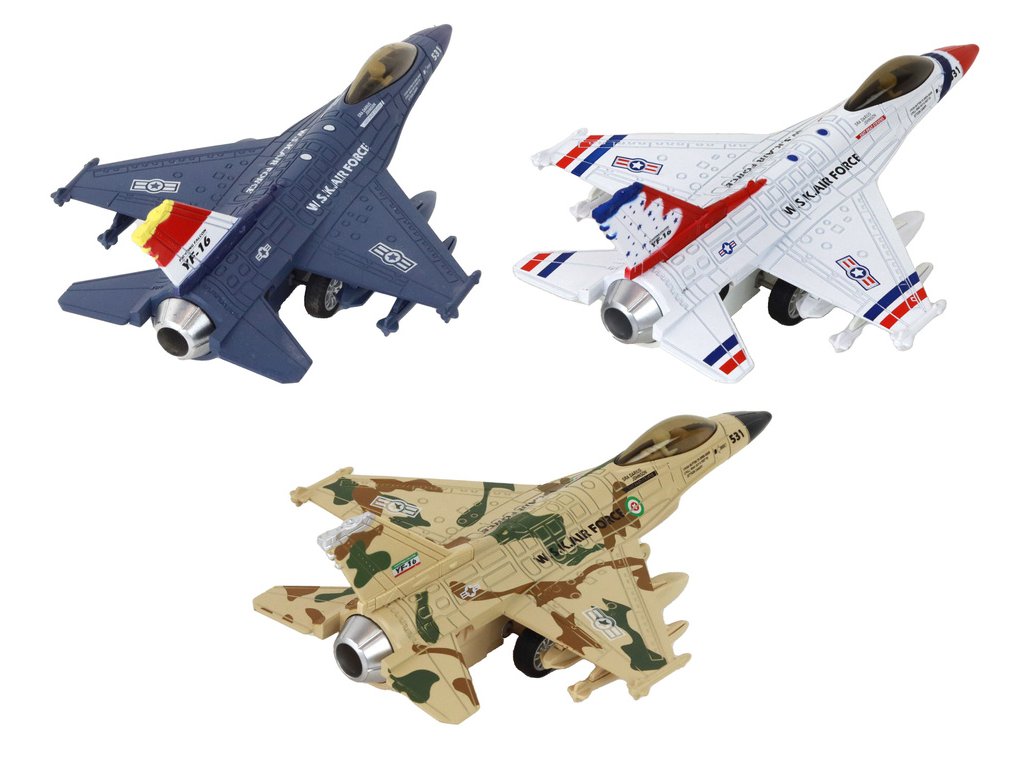 Vojenský stíhací letoun Moro se zvukem a světly Pohon s možností natahování: Každé letadlo má pohon, který umožňuje jeho natáhnutí a následné rozjetí vysokou rychlostí po povrchu To zajišťuje dynamickou a vzrušující zábavu pro děti