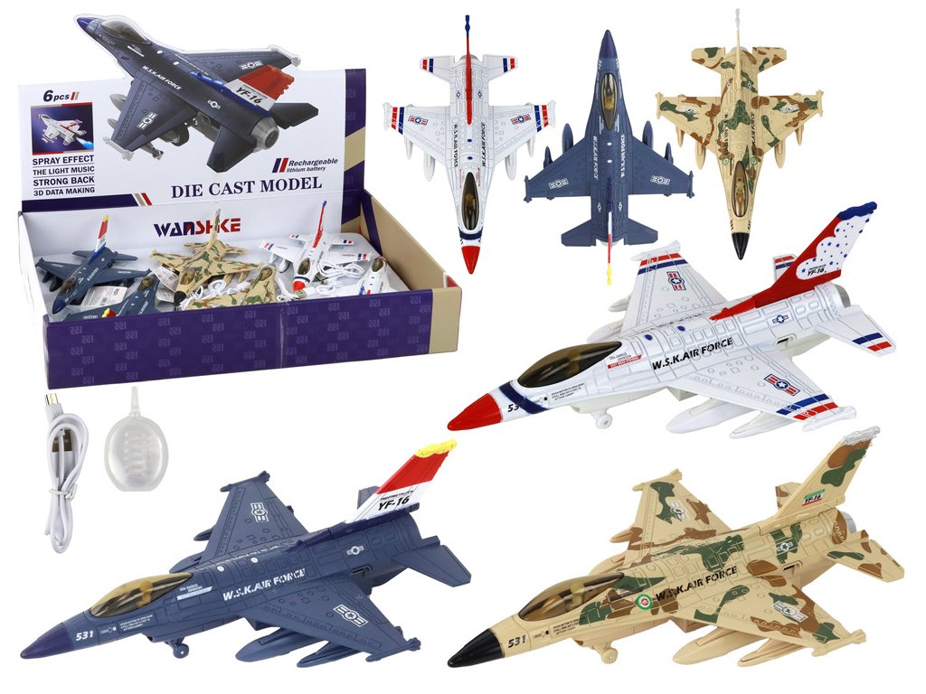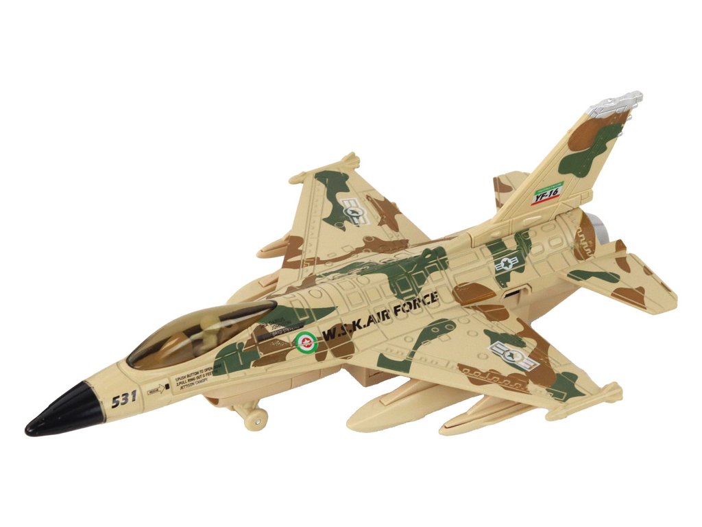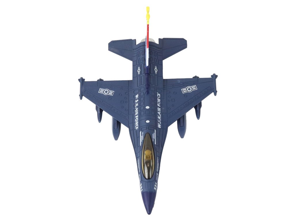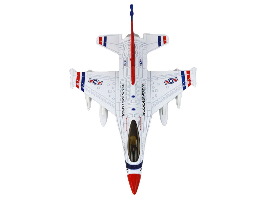 Vojenský stíhací letoun Moro se zvukem a světly Pohon s možností natahování: Každé letadlo má pohon, který umožňuje jeho natáhnutí a následné rozjetí vysokou rychlostí po povrchu To zajišťuje dynamickou a vzrušující zábavu pro děti