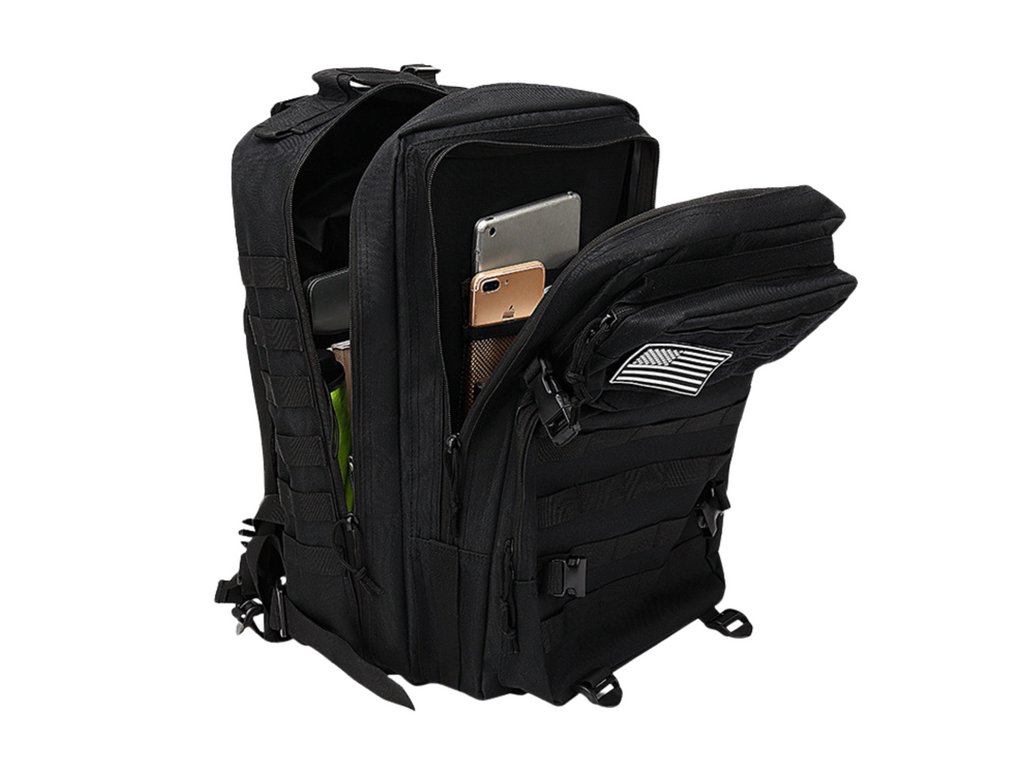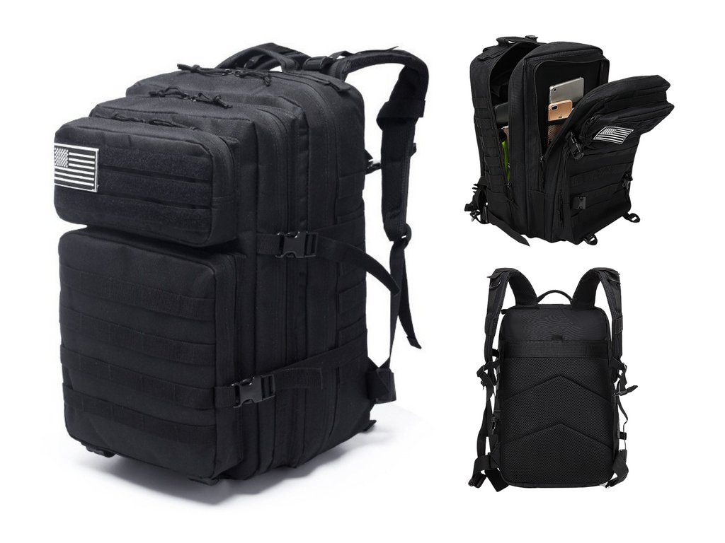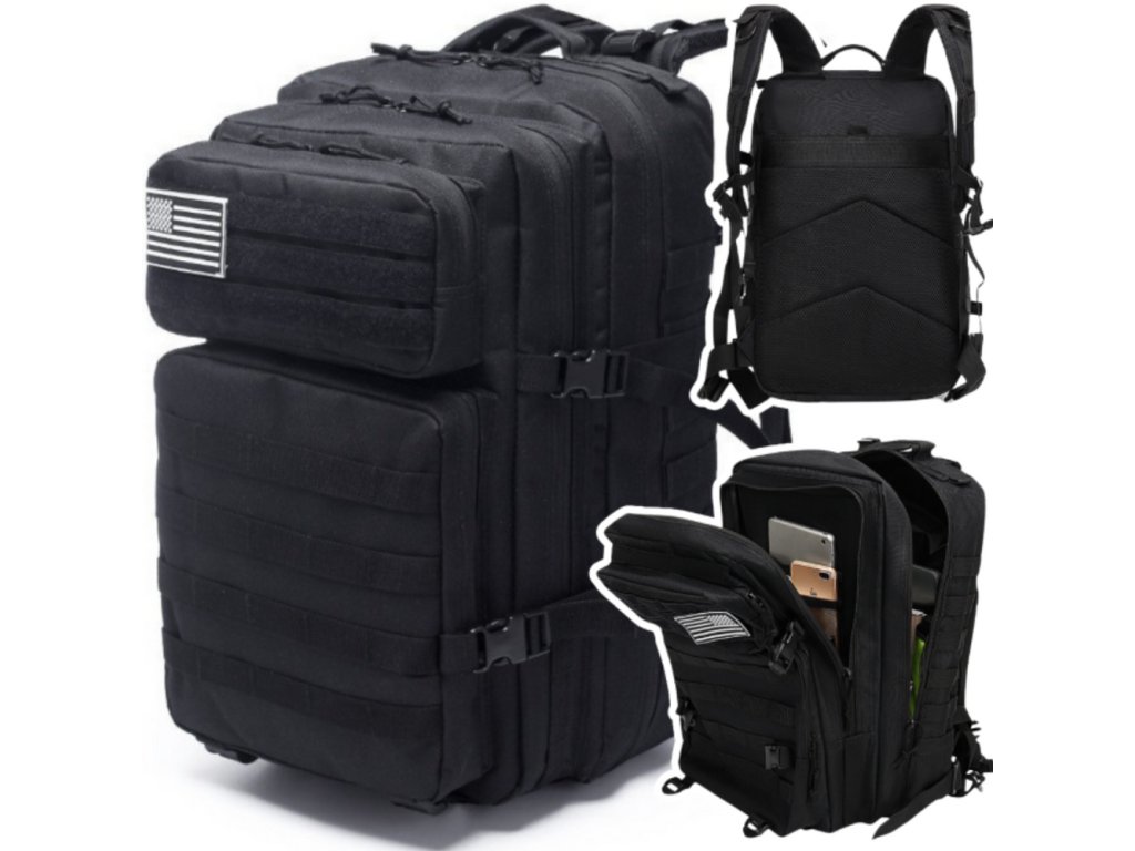 - Tento černý batoh, navržený v militárním stylu, je dokonalým společníkem pro pěší výlety, turistiku a každodenní používání