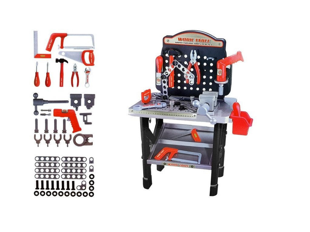 - Vysoká dílna Sada nářadí Akumulátorová vrtačka 75 cm Spousta nástrojů a šroubů zabaví malé kluky na dlouhé hodiny, budou chtít napodobovat svého tátu