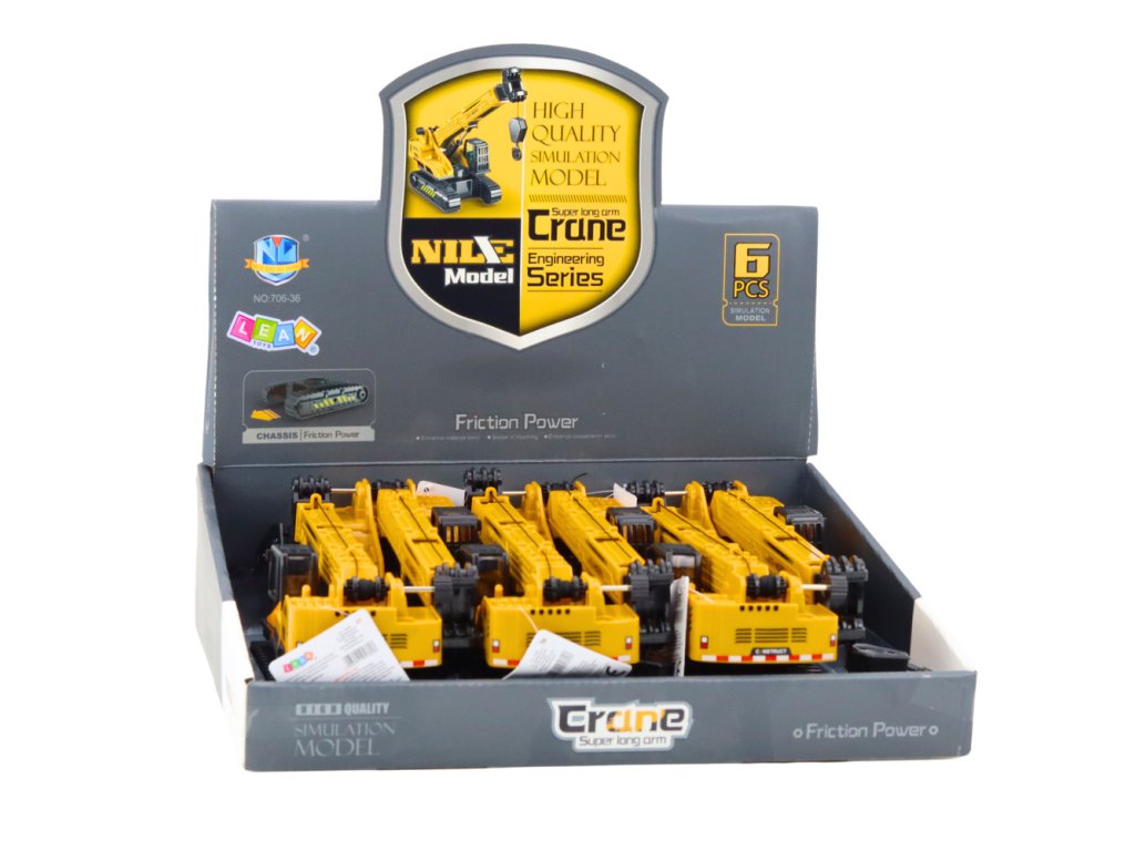 - Je vybaven pohyblivým ramenem jeřábu s funkcí zvedání a spouštění háku, což dokonale odráží činnost skutečného stavebního vozidla