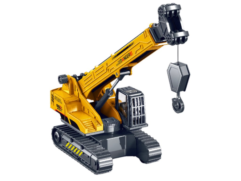 - Pohyblivé rameno s funkcí zvedání a spouštění háku: Napodobuje skutečnou činnost stavebního vozidla