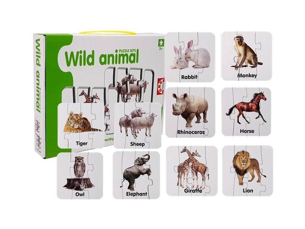 - Vzdělávací puzzle Skládanka Divoká zvířata 10 spojení Angličtina Puzzle, které učí, jsou ideální kombinací