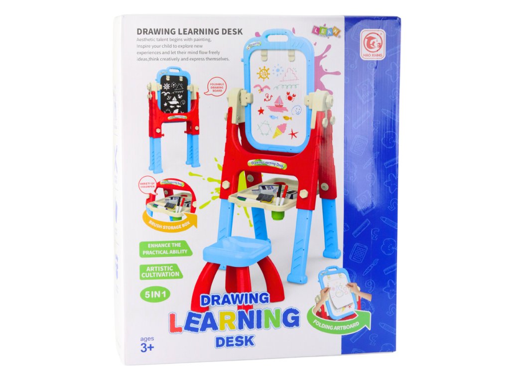- Vzdělávací tabule 5v1 s židličkou je rozšířená vzdělávací sada, která umožňuje dětem rozvíjet umělecké dovednosti a zábavu prostřednictvím kreslení, psaní a malování