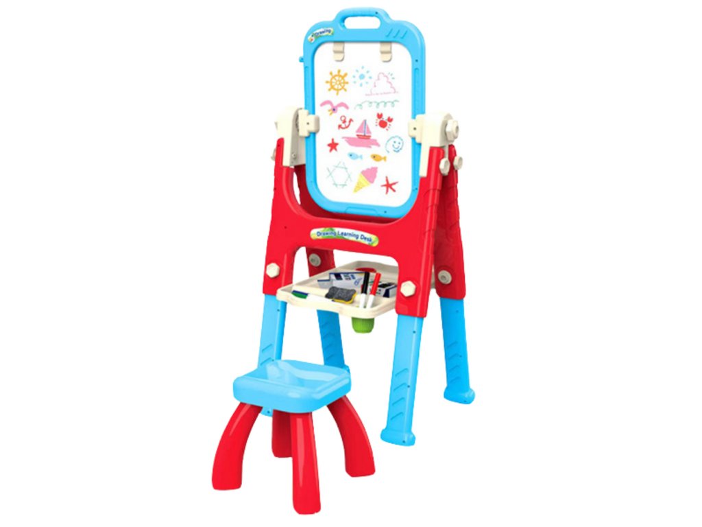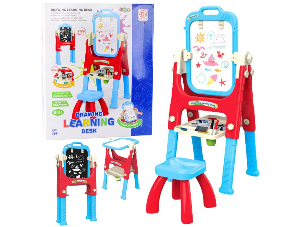 Vzdělávací tabule 5v1 s židličkou je rozšířená vzdělávací sada, která umožňuje dětem rozvíjet umělecké dovednosti a zábavu prostřednictvím kreslení, psaní a malování Jedná se o ideální kombinaci sucho-mazatelné tabule, křídové tabule, psacího stolu, stojanu a úložného prostoru na příslušenství
