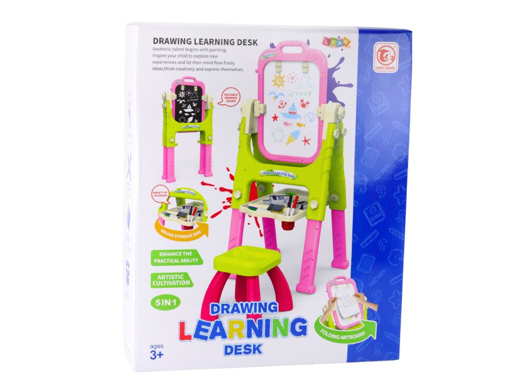 - Vzdělávací tabule 5v1 s židličkou je rozšířená vzdělávací sada, která nabízí dětem možnost rozvoje uměleckých dovedností a zábavy prostřednictvím kreslení, psaní a malování