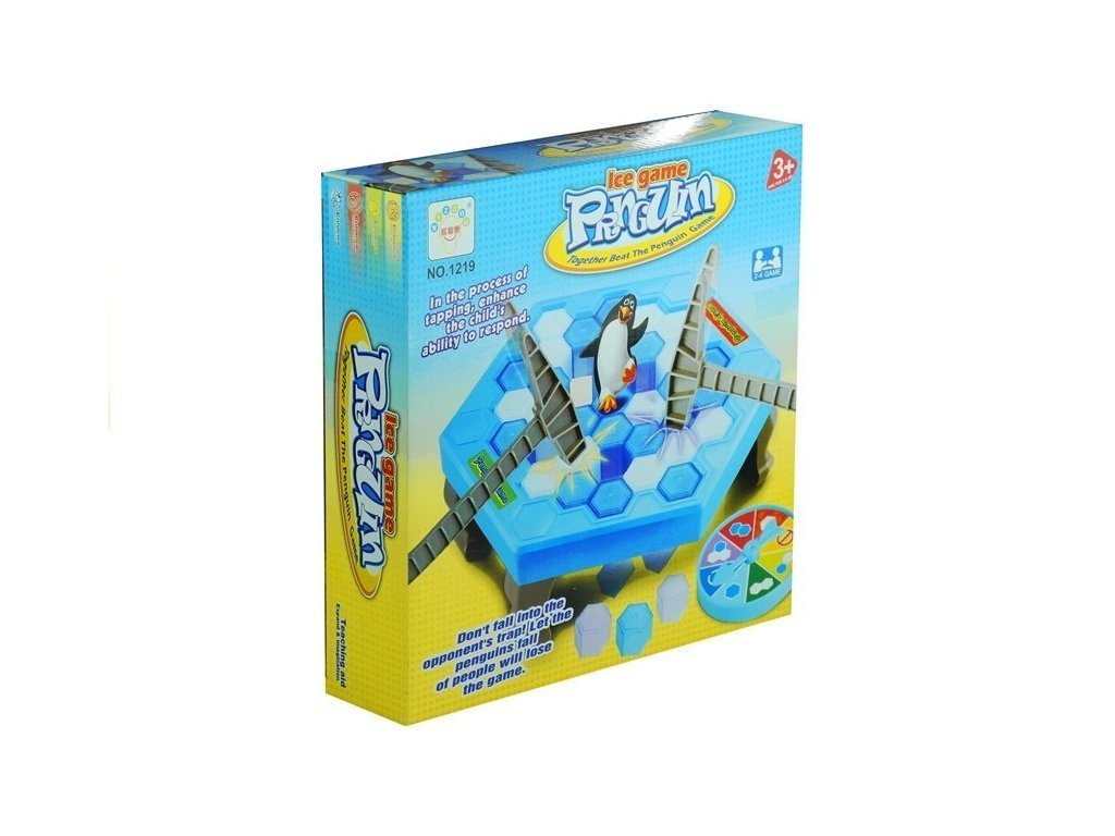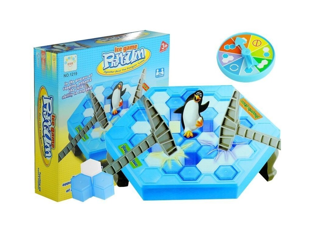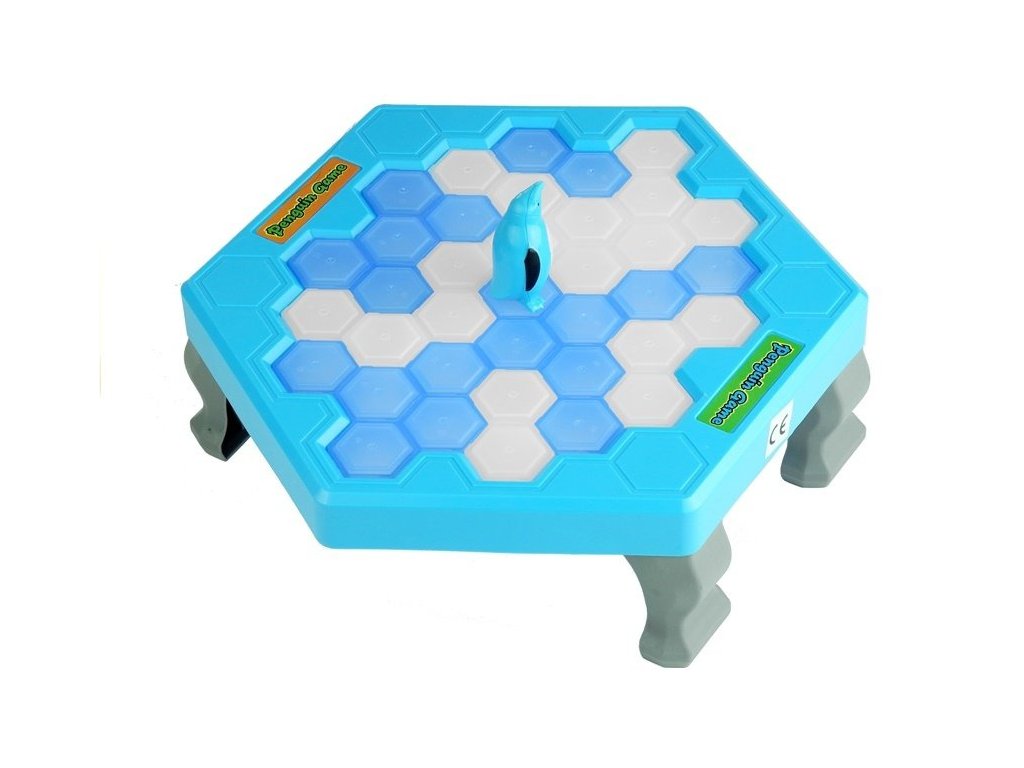 Zábavná hra "Zachraň Tučňáka" je dokonalým způsobem, jak strávit nezapomenutelné chvíle v rodinném kruhu. Hra je založena na zručném vyrazování ledových kostek pomocí kladívka, a to tak, aby nedošlo k zřícení celé ledové desky. Jen tak udržíte nebohého tučňáka v bezpečí. Každý hráč před svým tahem točí kolem štěstí, které určuje počet a barvu kostek, které je třeba vyrazit. Hráč, kterému nešťastně spadne tučňák, prohrává.