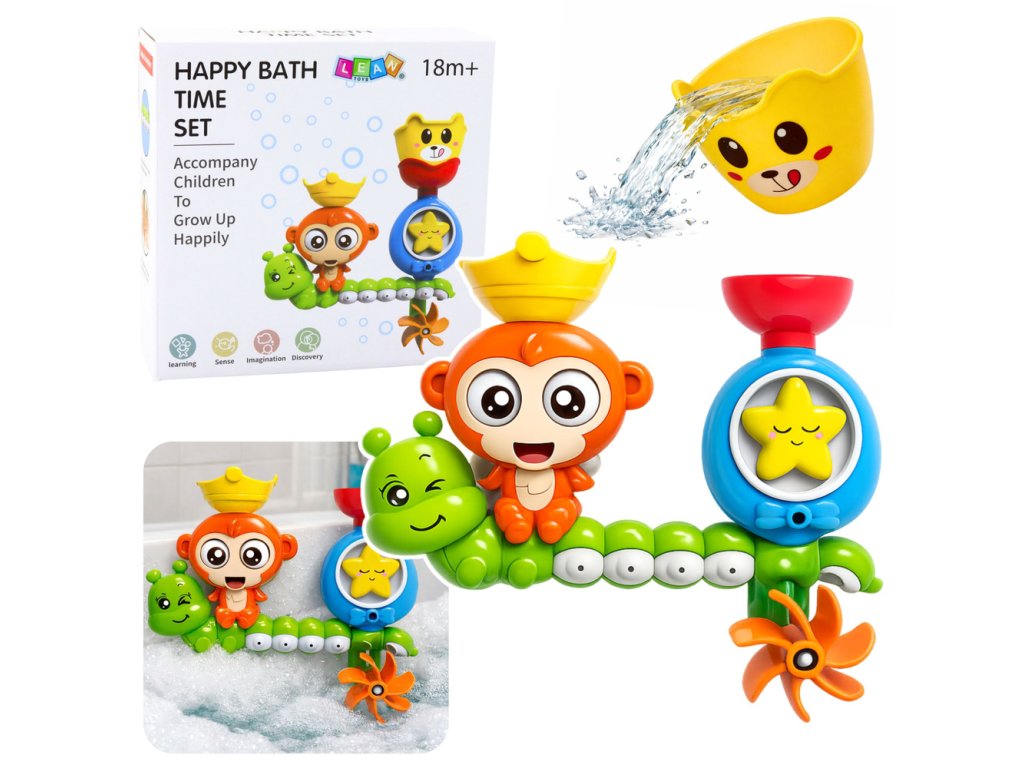 Přeměňte každodenní koupel na nezapomenutelné dobrodružství s naší Zábavnou vodní hračkou s motivem opičky! Tato barevná a interaktivní hračka je navržena tak, aby rozvíjela základní manuální a smyslové dovednosti vašeho dítěte a zároveň ho pobavila. Při nalévání vody pomocí přiloženého kbelíčku do čepičky opičky se začnou její oči otáčet, ústa se otevřou a voda se vyprší do vany. Zábava pokračuje, když voda prochází pohyblivými elementy jako housenka a hvězdička, které aktivují spodní kolovrátek a vytvářejí dynamický mechanismus.