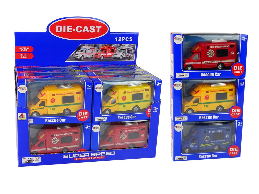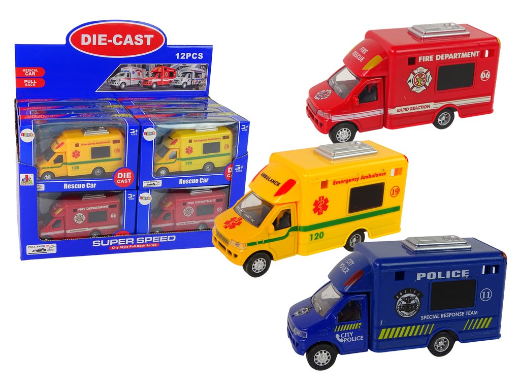 Auto záchranné vozidlo policie hasiči s frikčním pohonem 3 modely Autíčka jsou nadčasová hračka.