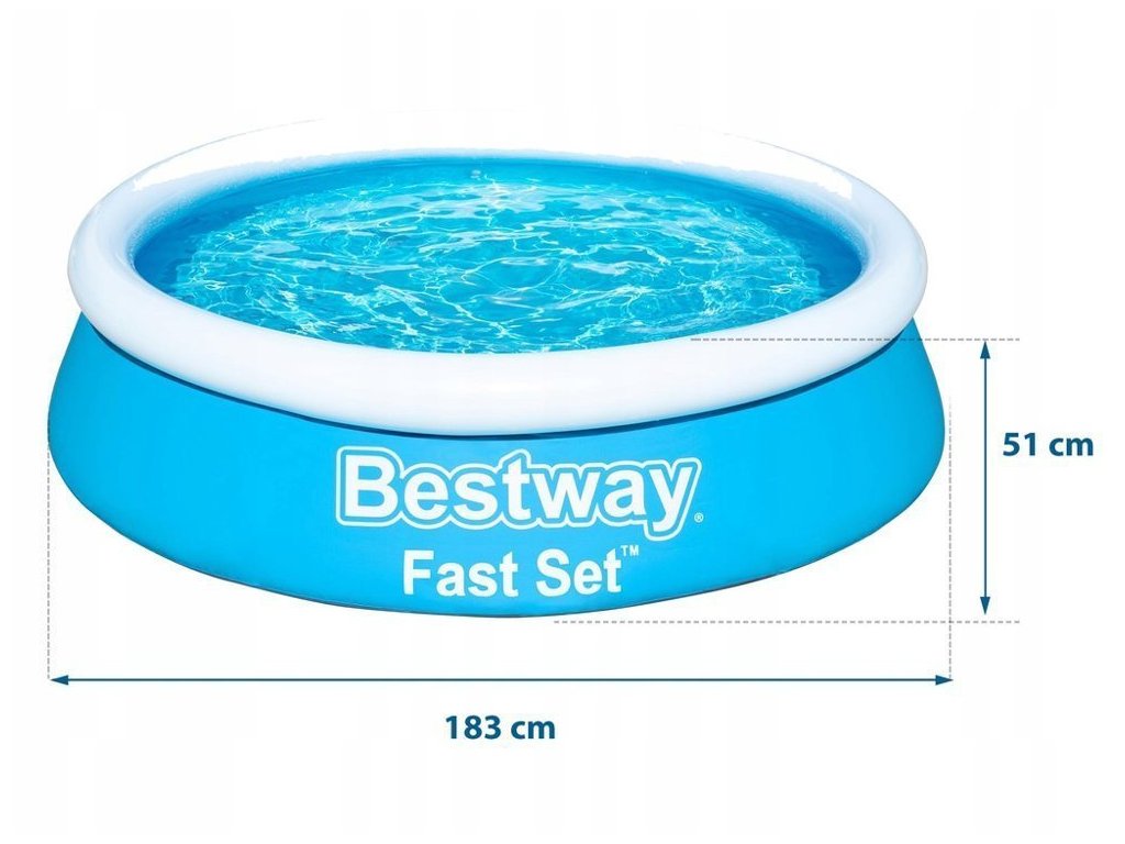 - Tento bazén o rozměrech 183 x 51 cm je navržen tak, aby poskytoval maximální bezpečnost a pohodlí díky nafukovacímu prstenci a vodnímu tlaku